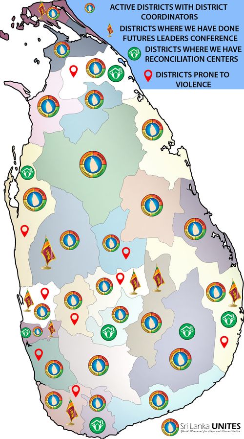 Sri Lanka is where our movement began back in 2007. The movement is now over 20,000 members strong, active in 25 districts, engaging youth in five reconciliation centers and has 15 full-time staff.